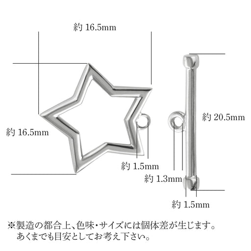 材質:K18WG ※18金ホワイト系 目安寸法: スター部分:縦横16.50mm 丸カン1.50mm 留め部分:全長20.50mm 縦1.50~2.3mm 丸カン1.30mm 刻印:K18WG ※製造の都合上、サイズと色味には若干の個体差が出る場合がございます。あくまでも目安としてお考えください。
