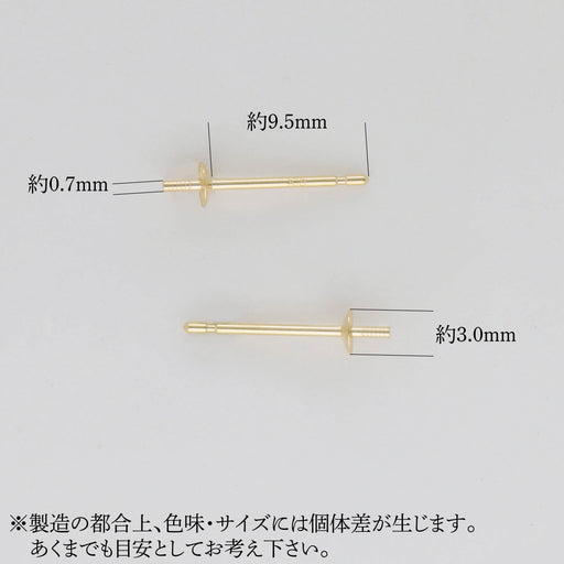 材質:K10YG ※10金イエロー系 目安寸法: 皿直径2.0mm→皿下約9.5mm 皿上約3.0mm ポスト線形0.7mm 刻印:K10 ※製造の都合上、サイズと色味には若干の個体差が出る場合がございます。あくまでも目安としてお考えください。 ※こちらはペア売りの商品です。