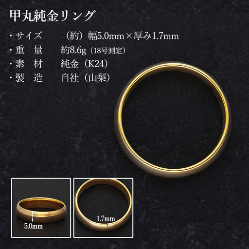 【受注販売/納期約3週間】K24 純金リング (甲丸 ミガキ 5mm)