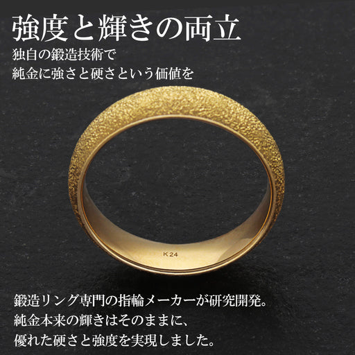 【受注販売/納期約3週間】K24 純金リング (平打ち ダイヤモンドブラスト)