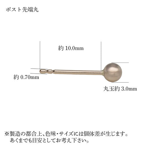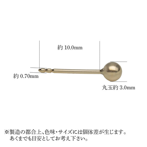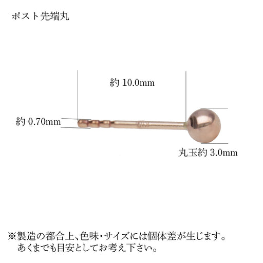 材質:K10PG ※10金ピンク系 目安寸法:丸玉サイズ:3.0mm 4.0mm 5.0mm スマートポスト3本溝 0.7/10mm 刻印:K10 ※製造の都合上、サイズと色味には若干の個体差が出る場合がございます。あくまでも目安としてお考えください。 ※こちらはペア売りの商品です。