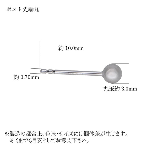 材質:Pt900 目安寸法: 各丸玉サイズ:3.0mm 5.0mm スマートポスト2本溝 0.7/10mm 先端丸 刻印:Pt900 ※製造の都合上、サイズと色味には若干の個体差が出る場合がございます。あくまでも目安としてお考えください。 ※こちらはペア売りの商品です。