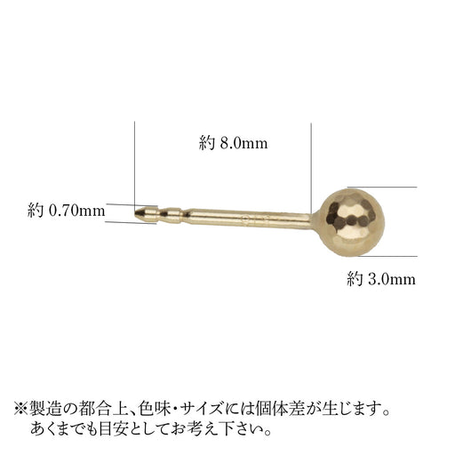 材質:K18PG ※18金ピンク系 目安寸法: ミラーボール小:3.0mm スマートポスト2本溝 0.7/8mm 刻印:K18 ※製造の都合上、サイズと色味には若干の個体差が出る場合がございます。あくまでも目安としてお考えください。 ※こちらはペア売りの商品です。