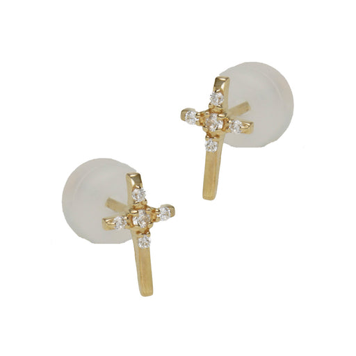 K18YG クロスピアスCZ付き スマートポスト2本溝0.7/8